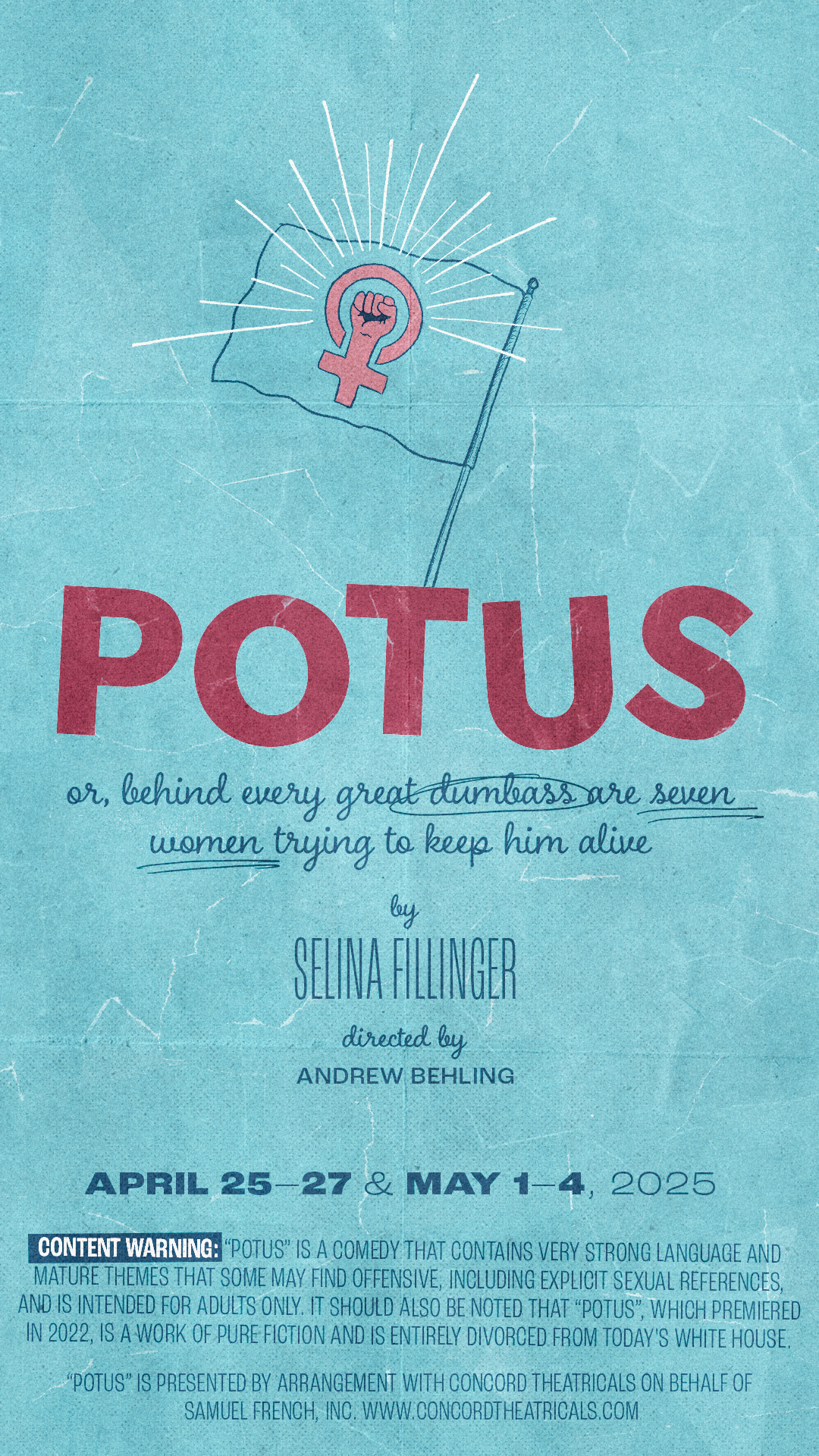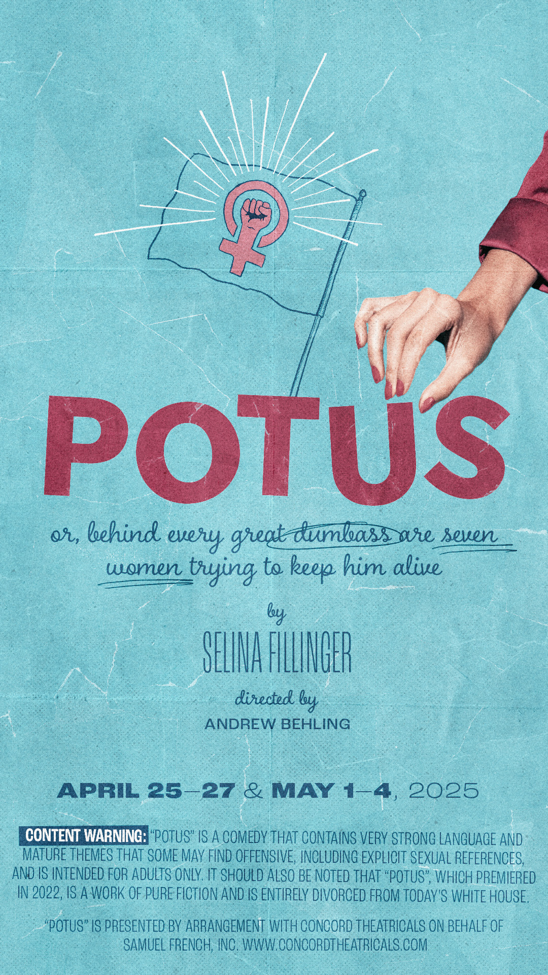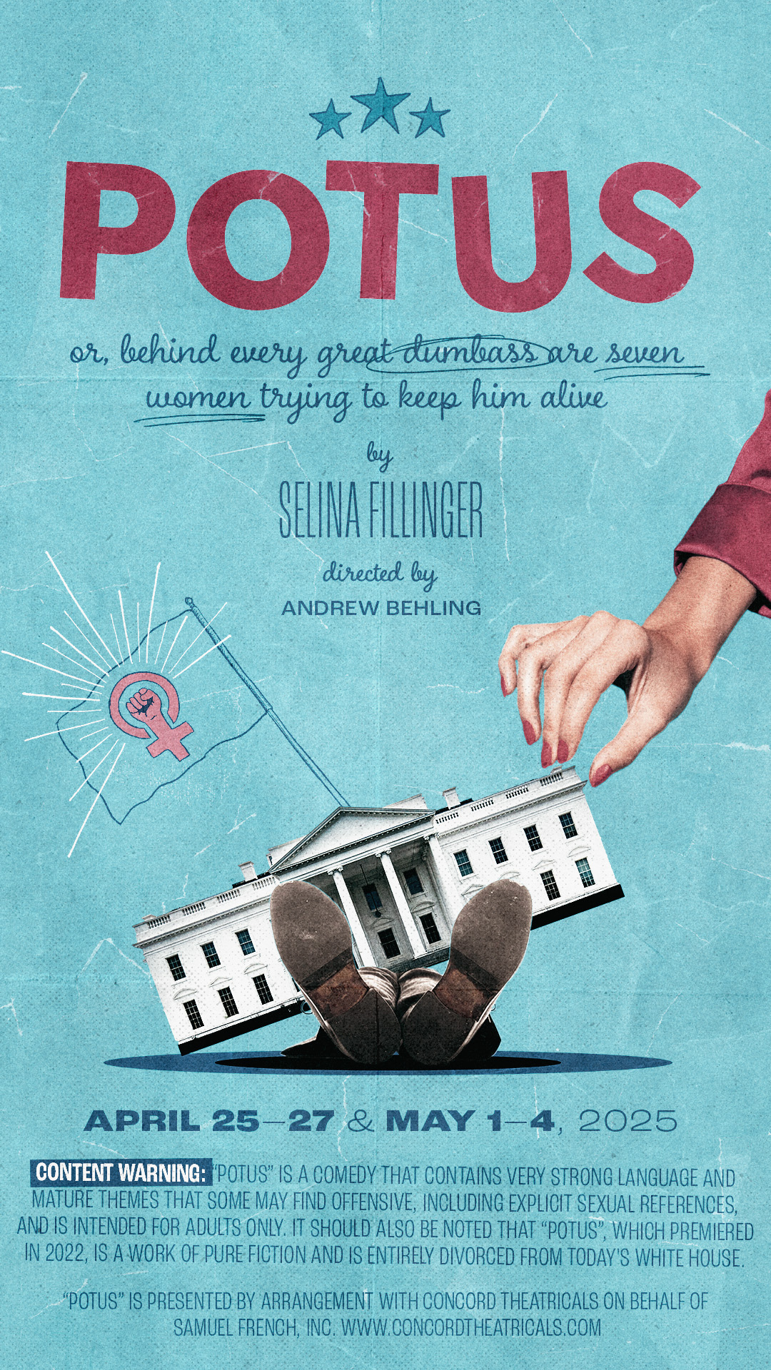 Selina Fillinger’s POTUS: Or, Behind Every Great Dumbass are Seven Women Trying to Keep Him Alive is a sharp, all-female political farce set over one chaotic day, as seven women scramble to contain a PR disaster sparked by the President’s crude outburst. As chaos escalates, they must navigate personal and professional turmoil to keep the administration afloat.